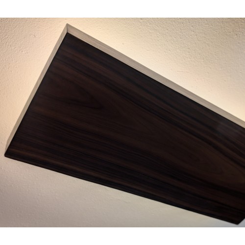 Ce placage de bois naturel est légèrement ondulé au fil du veinage du bois, ajoutant un discret relief naturel et brillant.